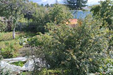 Плодовый сад: яблони, груши, вишня, жимолость, смородина, малина, клубника, калина, черноплодная рябина, крыжовник