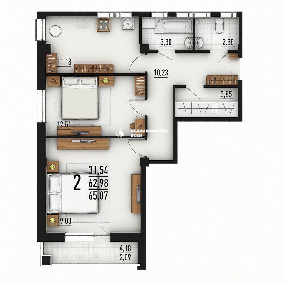Предлагаю вашему вниманию просторную 2-комнатную квартиру площадью 63 м² в новом монолитном доме, построенном в 2024 году.